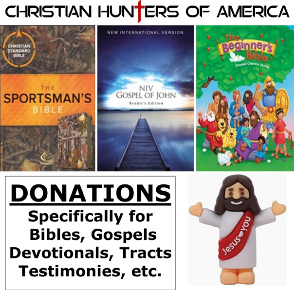 Your generosity helps advance the mission of Christian Hunters Of America, a registered 501(c)(3) nonprofit organization dedicated to faith, fellowship, conservation, and the outdoor lifestyle.
